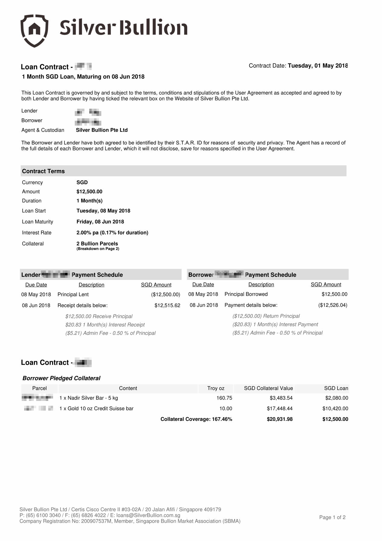 A parcel is uniquely identified physical property, audited, fully insured, guaranteed to be genuine and subjected only to Singapore law. Parcels can be securely stored long-term, traded near spot prices, taken delivery of or collateralized to obtain Secured Peer-to-Peer Loans.