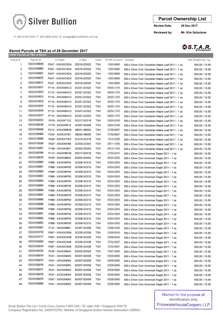 - Bullion Auditors, who are hired quarterly to physically inspect parcels against the Parcel Ownership List.
